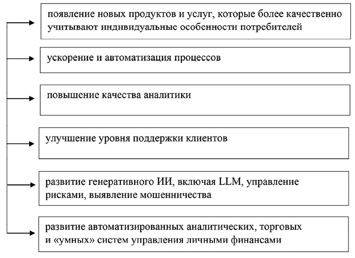 ИИ активно используют в построении новых финансовых продуктов [6]. В настоящее время в финтех-секторе: