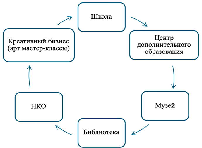1. Инструменты дополнительного образования формируют устойчивые связи между участниками культурной экосистемы и обеспечивают доступность культурных практик для различных групп населения. Их применение позволяет не только расширять спектр образовательных и культурных возможностей, но и создавать условия для постоянного взаимодействия между учреждениями культуры и образования.